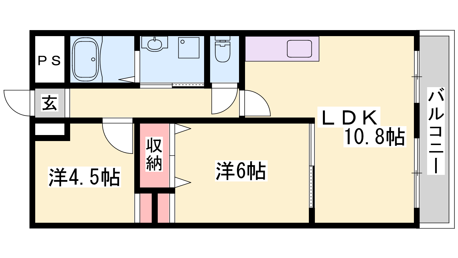 - LDK10.8帖、洋室6帖、洋室4.5帖