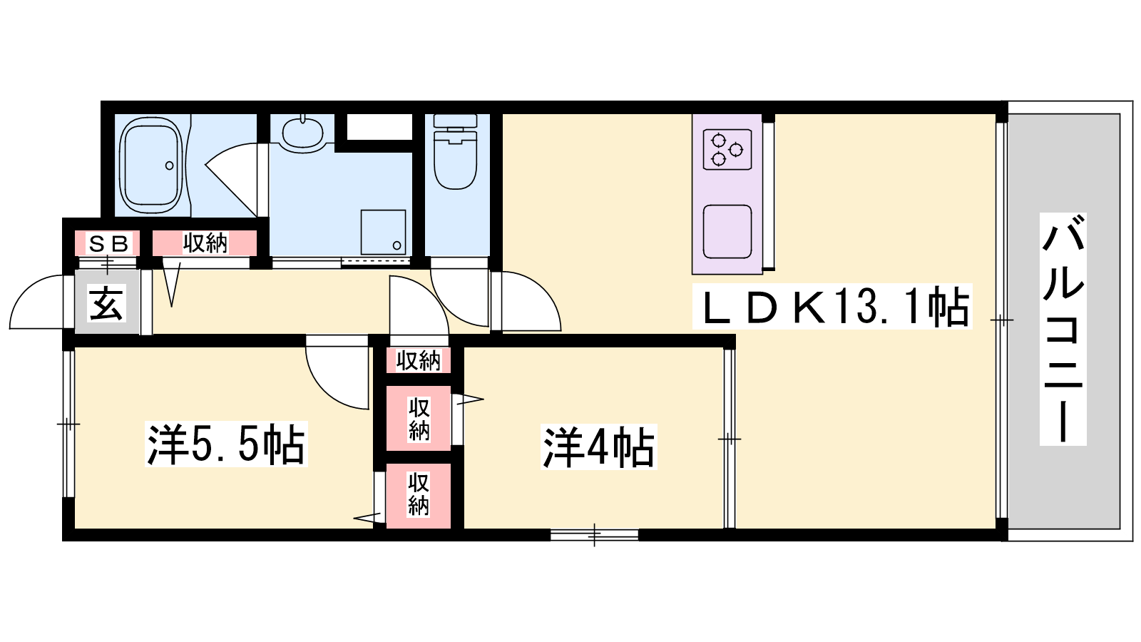 - LDK13.1帖、洋室5.5帖、洋室4帖