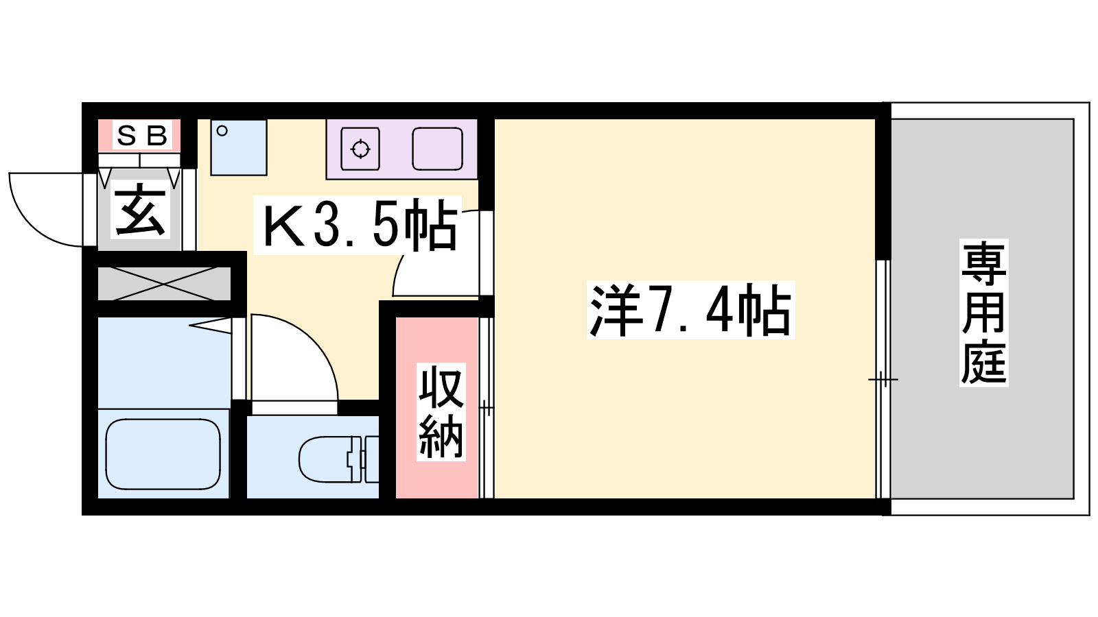 - 洋室7.4帖、K3.5帖