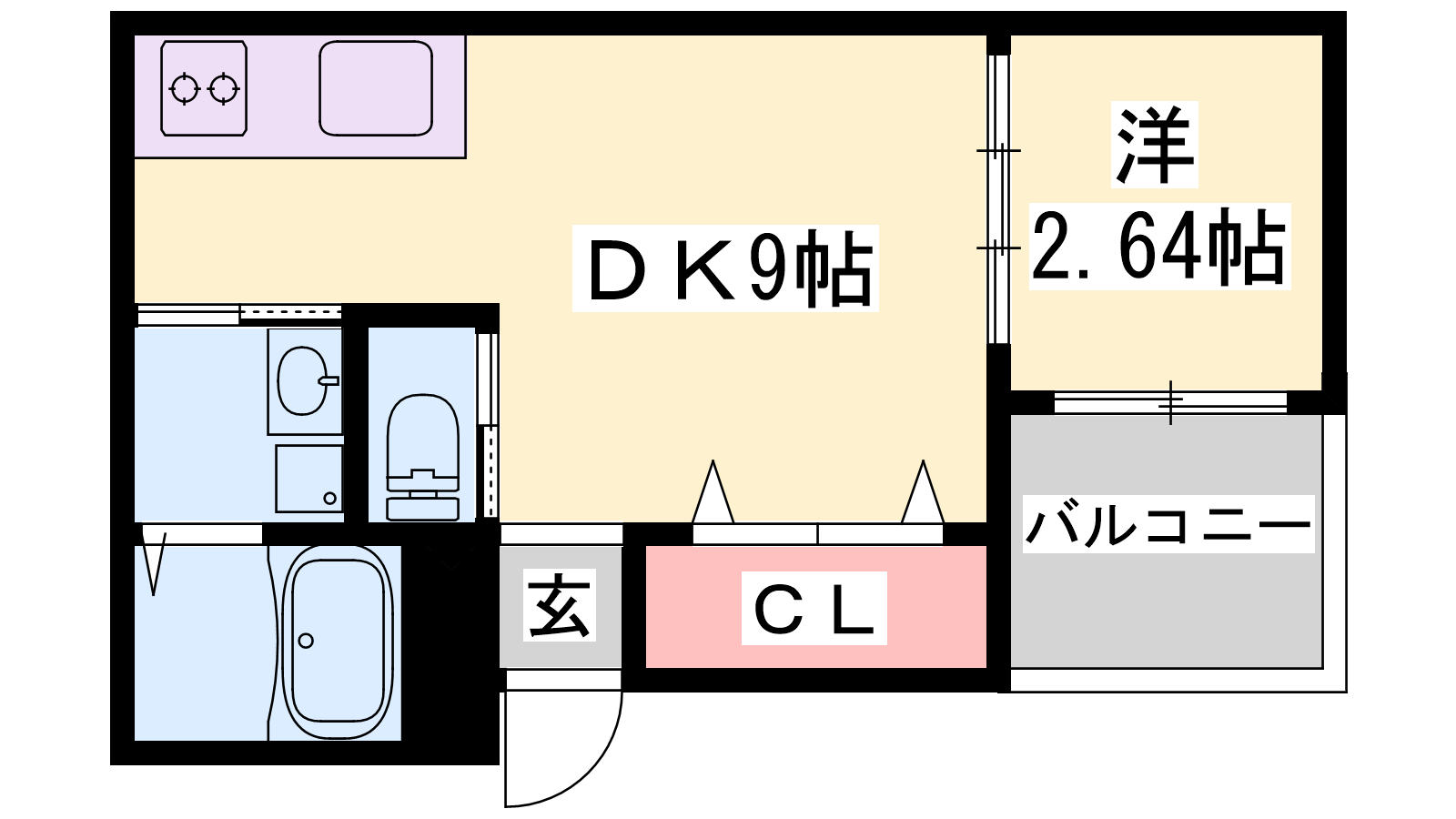 - LDK9帖、洋室2.6帖