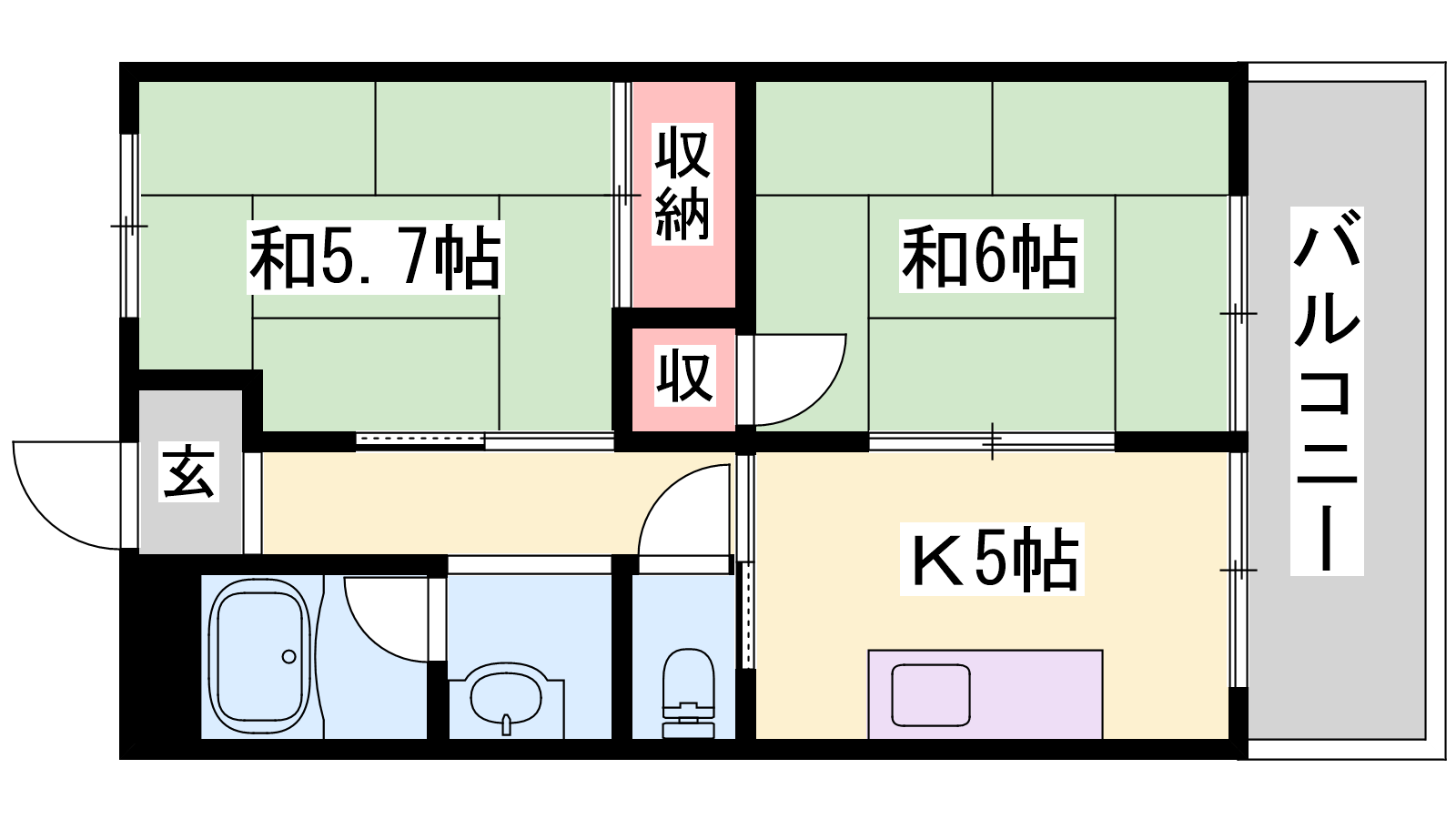 - K5帖、和室6帖、和室5.7帖