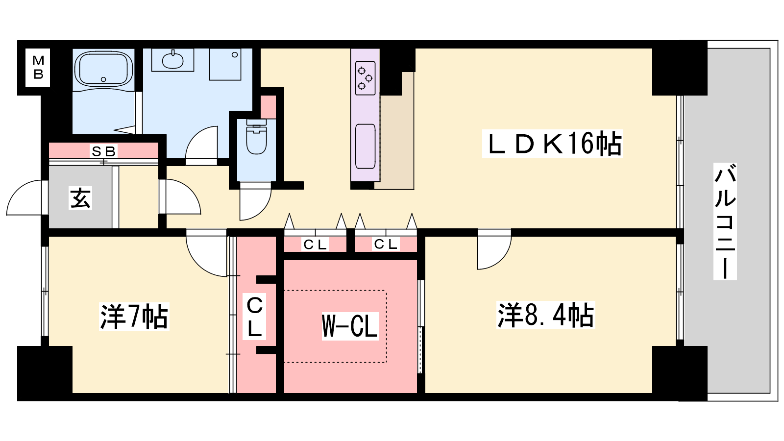 - LDK16帖、洋室8.4帖、洋室7帖