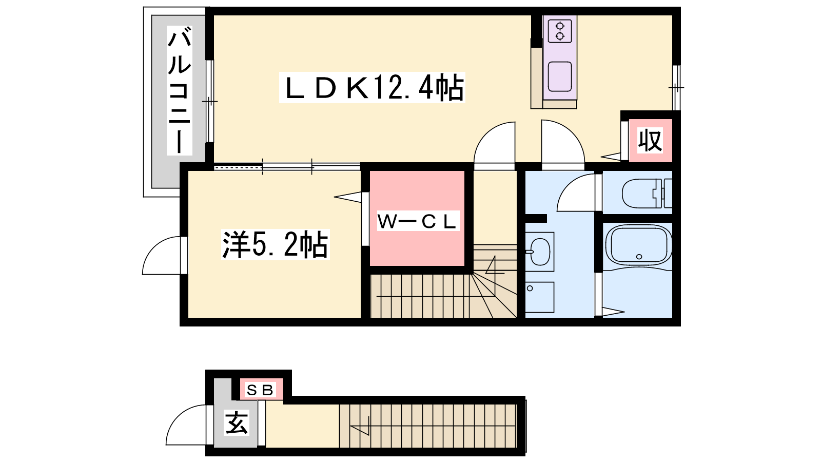 - LDK12.4帖、洋室5.2帖
