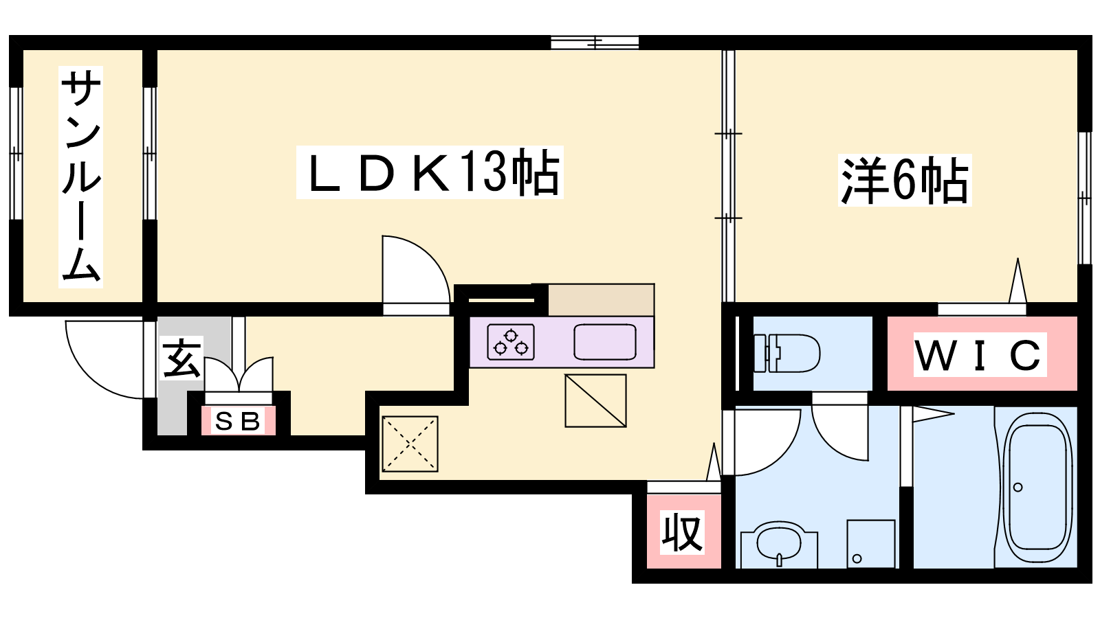 - LDK13帖、洋室6帖