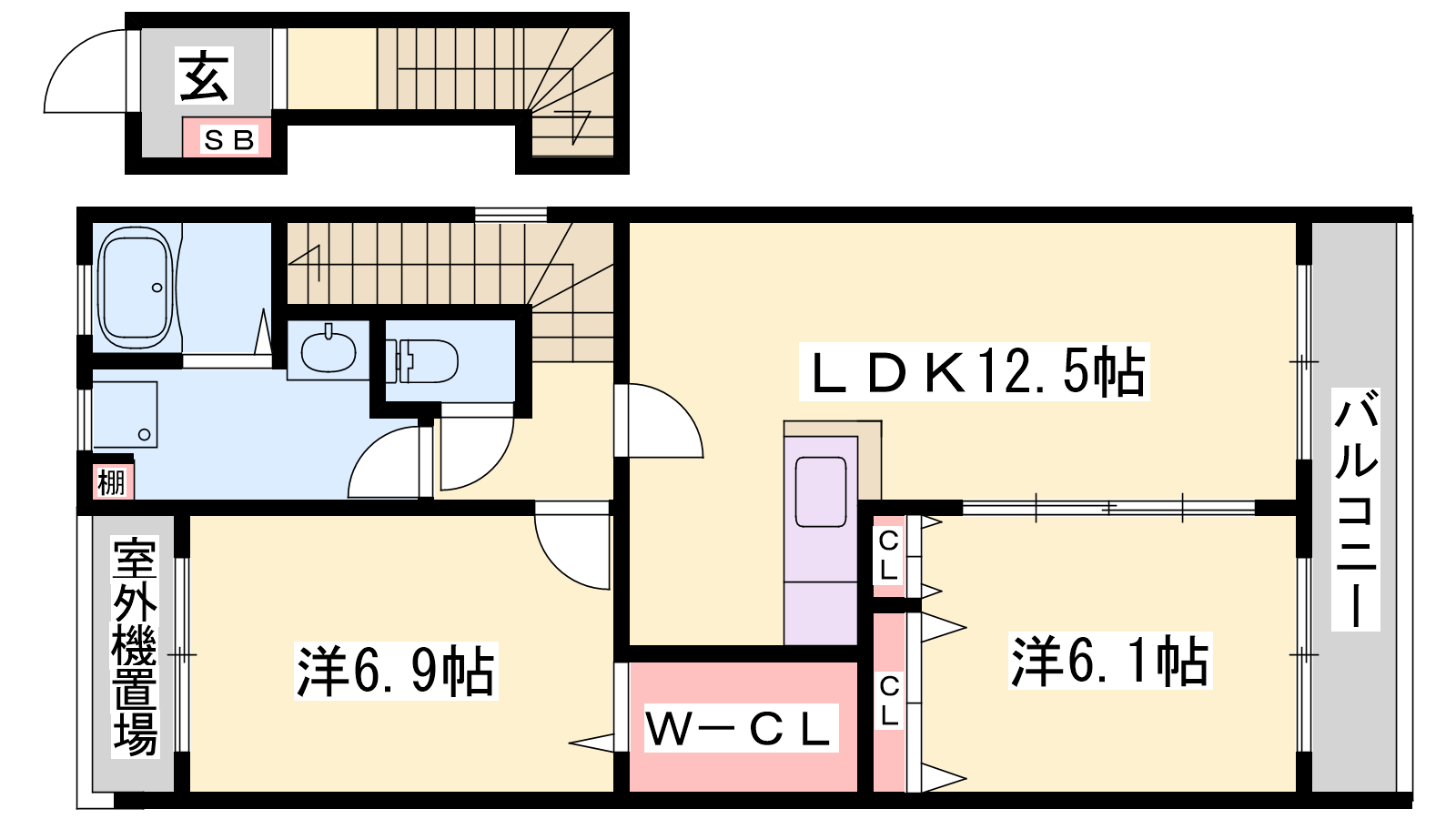 - LDK12.5帖、洋室6.9帖、洋室6.1帖
