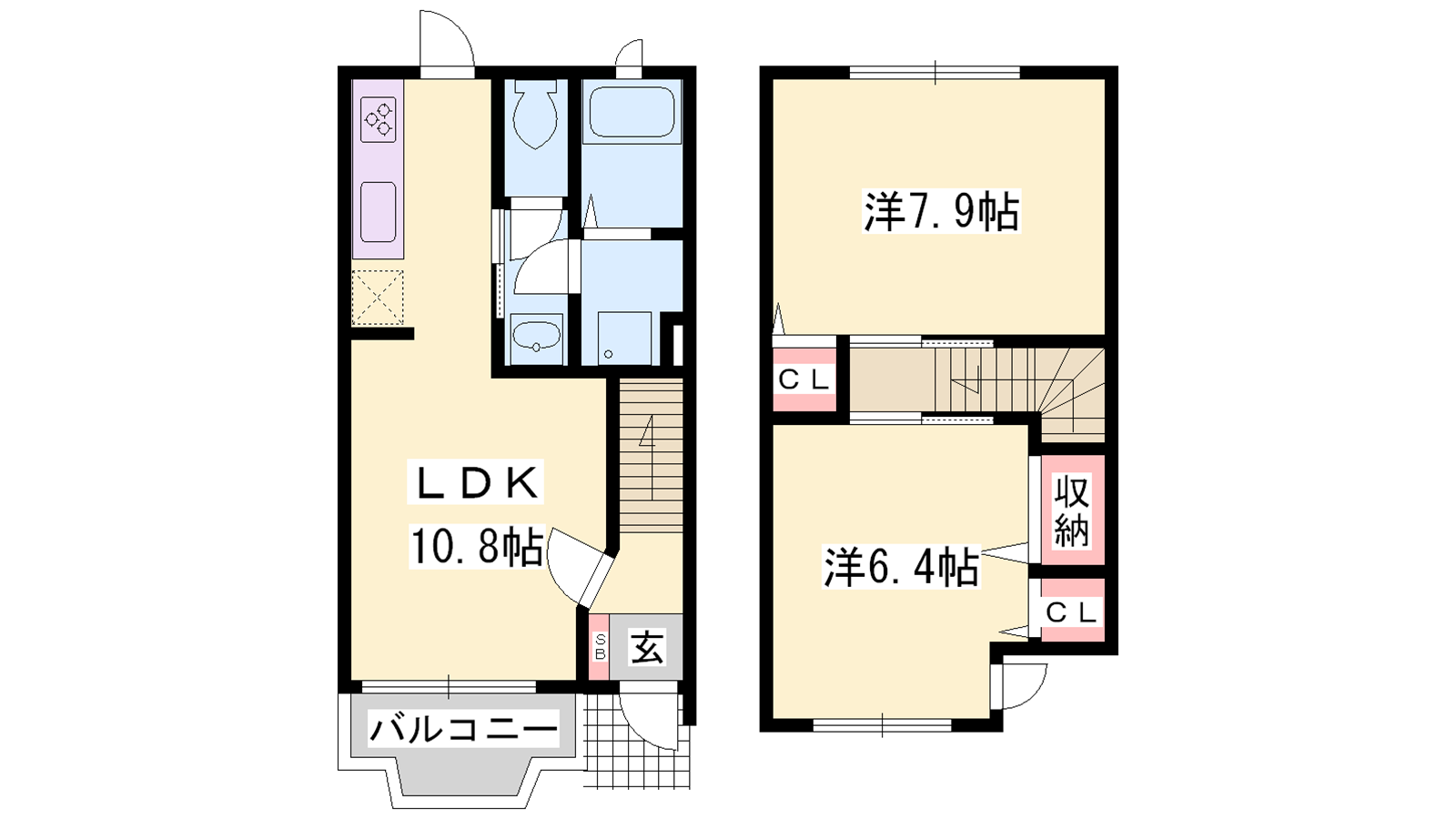 - LDK10.8帖、洋室6.4帖、洋室7.9帖