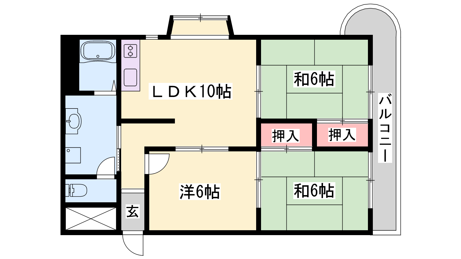 - LDK10帖、洋室6帖、和室6帖、和室6帖