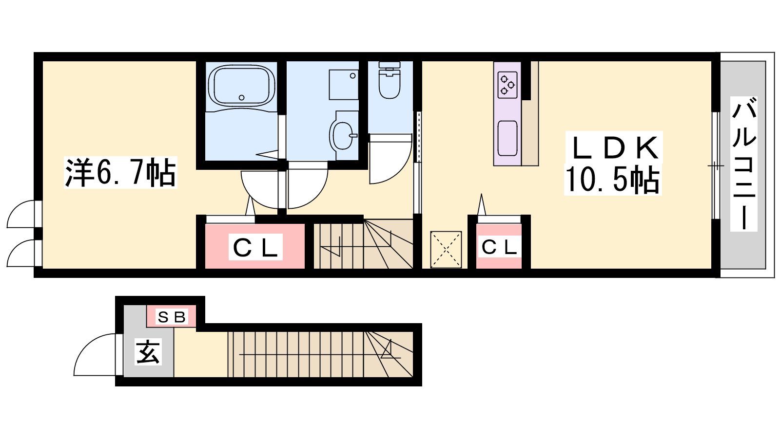 - LDK10.5帖、洋室6.7帖