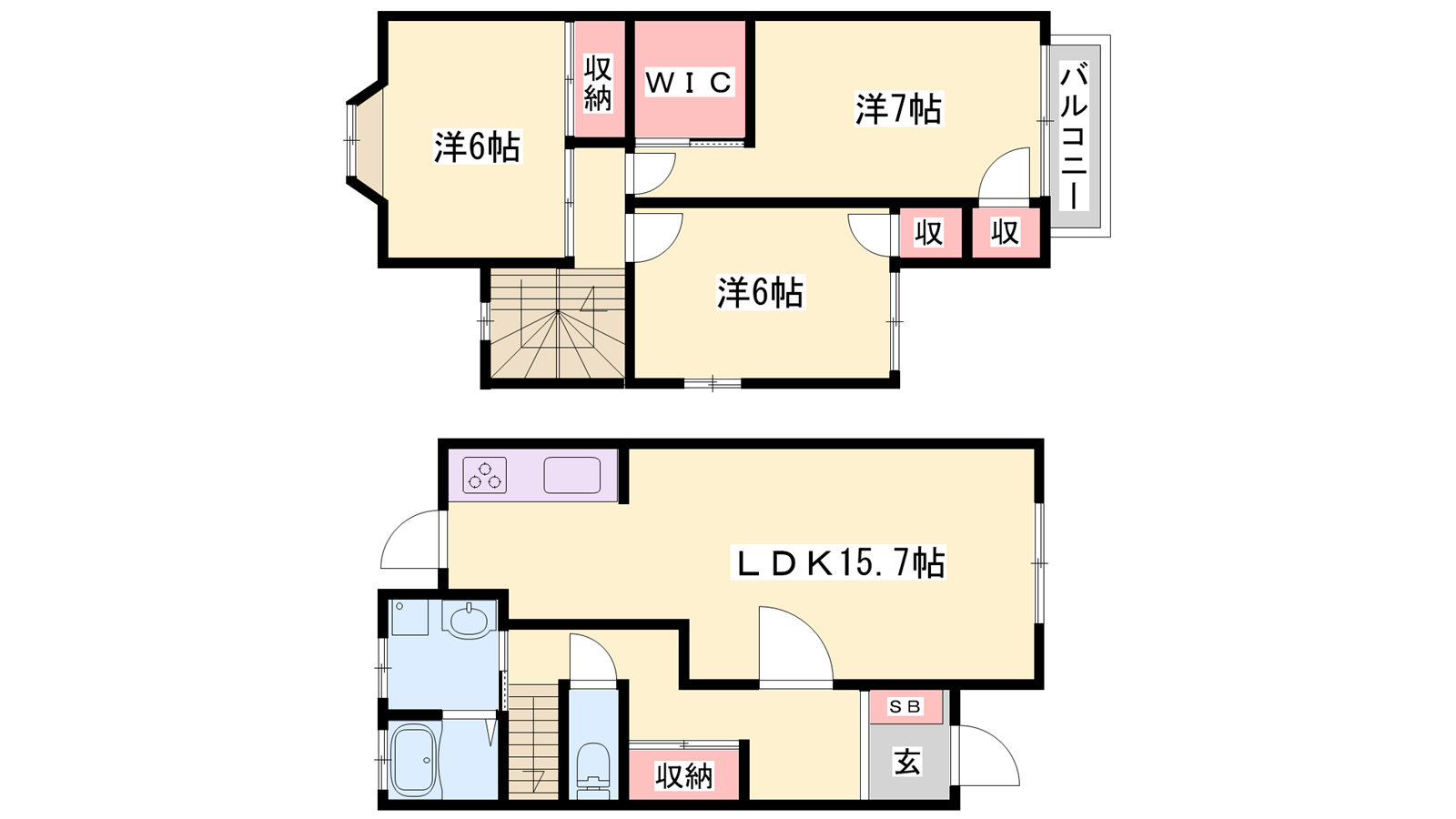 - LDK15.7帖、洋室7帖、洋室6帖、洋室6帖