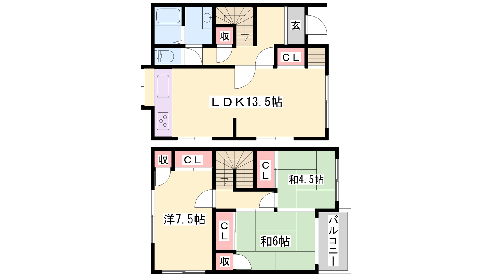 - LDK13.5帖、洋室7.5帖、和室6帖、和室4.5帖