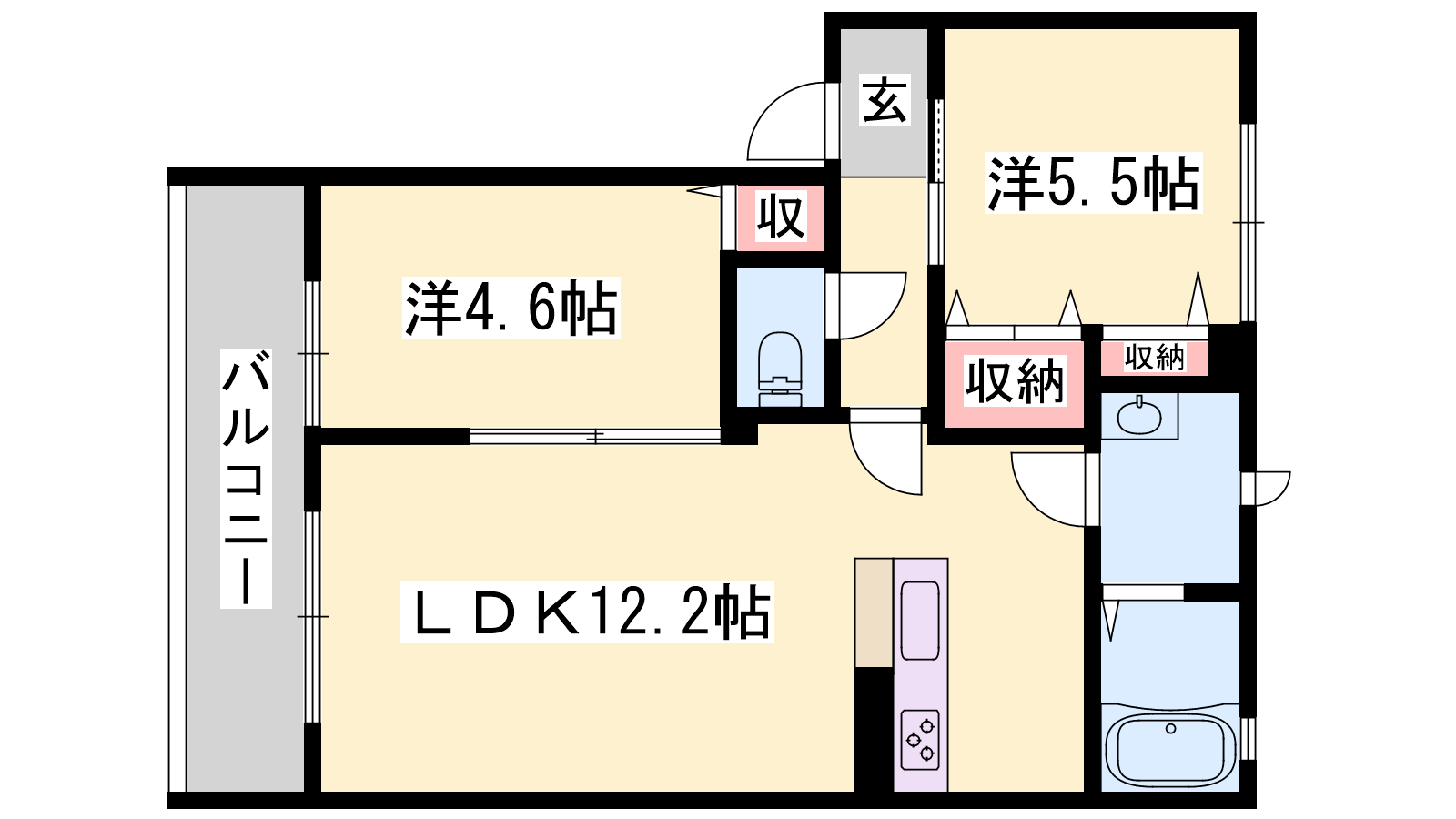 - LDK12.2帖、洋室5.5帖、洋室4.6帖