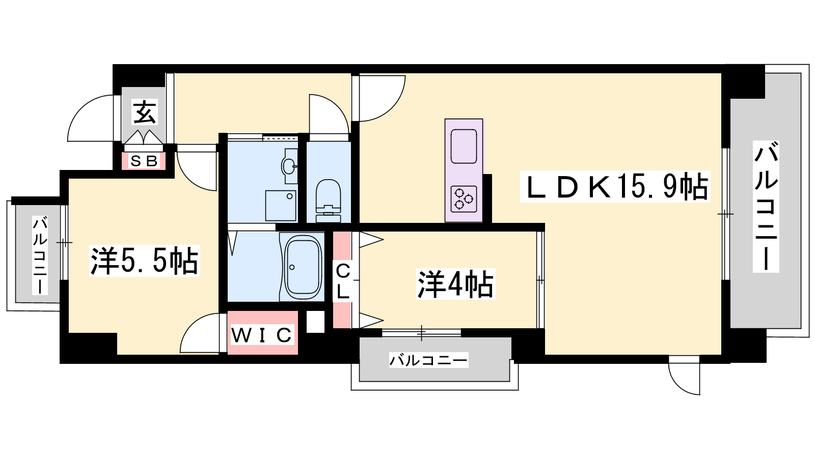 - LDK15.9帖、洋室5.5帖、洋室4帖