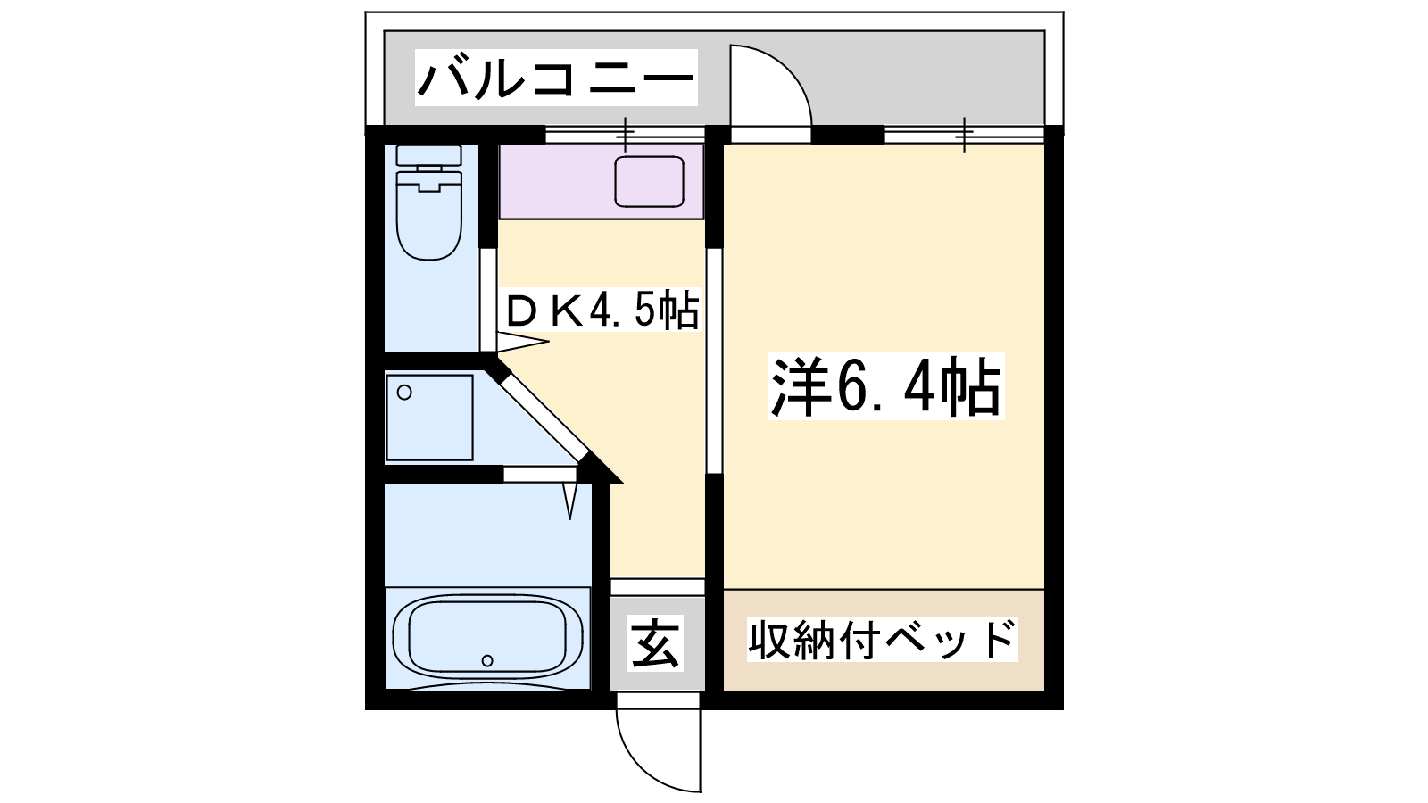 - DK4.5帖、洋室6.4帖