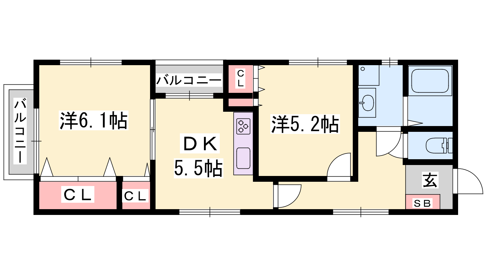 - DK5.5帖、洋室6.1帖、洋室5.2帖