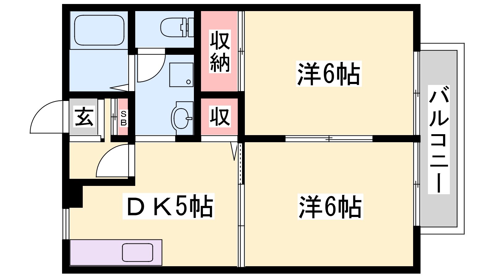 - DK5帖、洋室6帖、洋室6帖