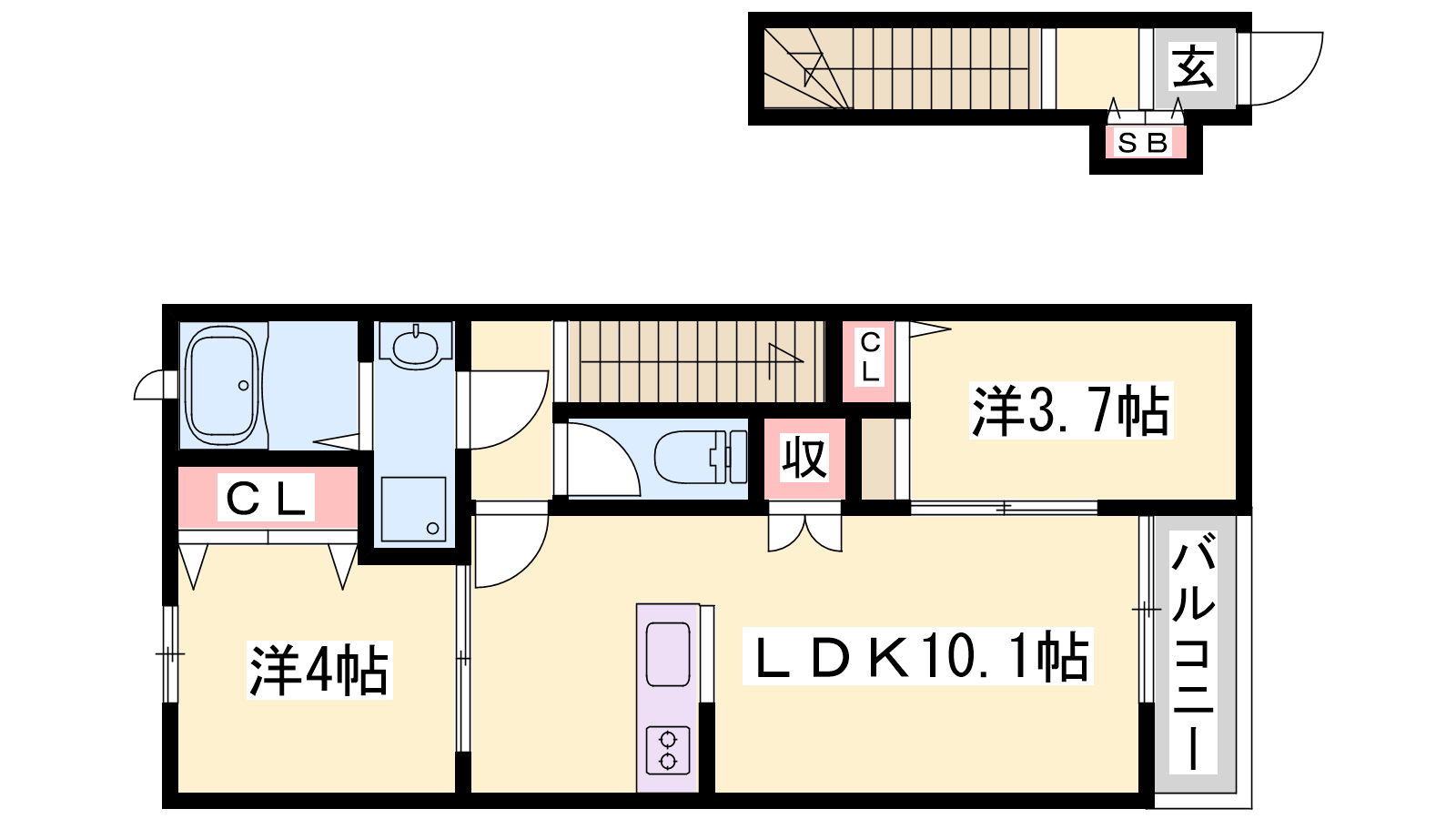 - LDK10.1帖、洋室4帖、洋室3.7帖