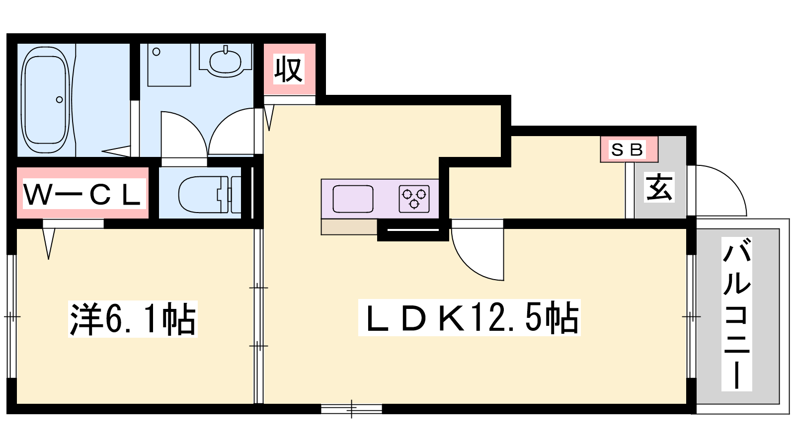 - LDK12.5帖、洋室6.1帖