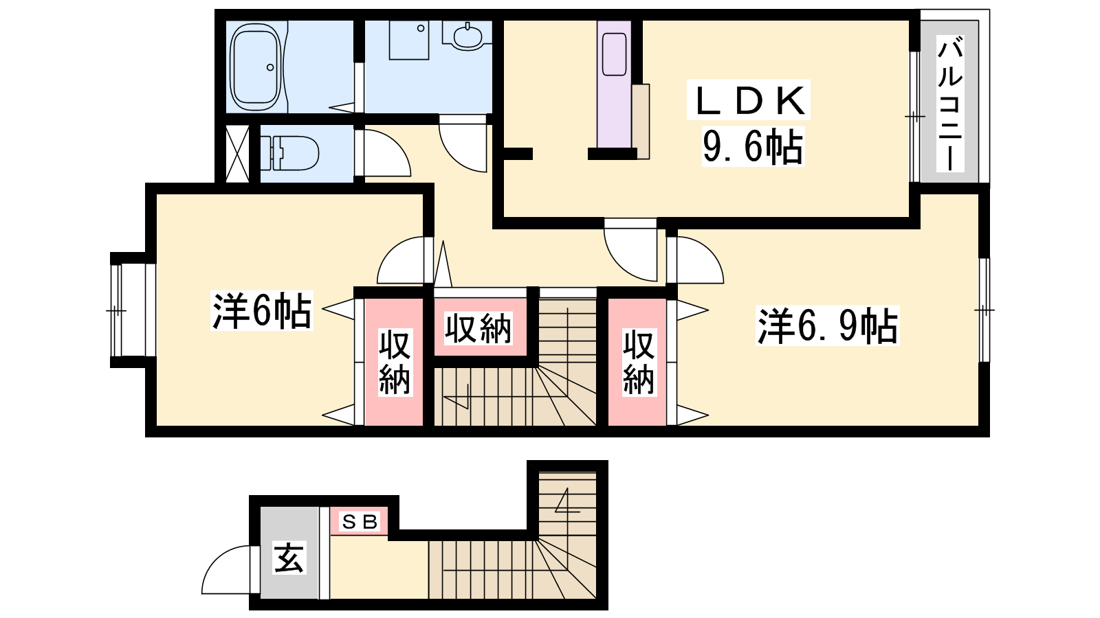 - DK9.6帖、洋室6.9帖、洋室6帖