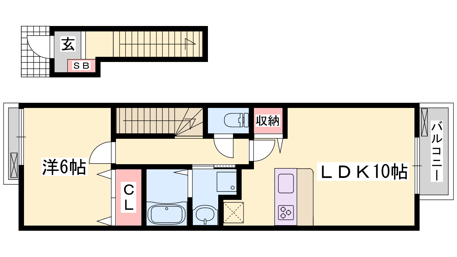 - LDK10帖、洋室6帖