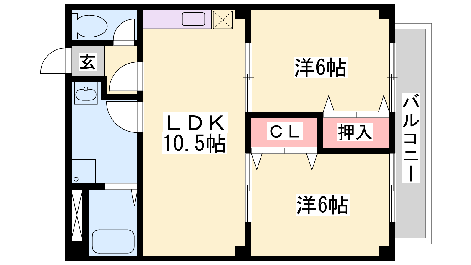 - LDK10.5帖、洋室6帖、洋室6帖