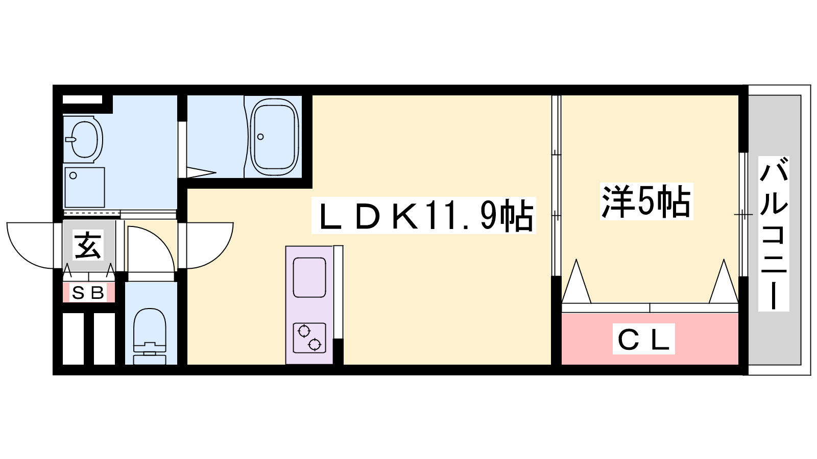 - LDK11.9帖、洋室5帖