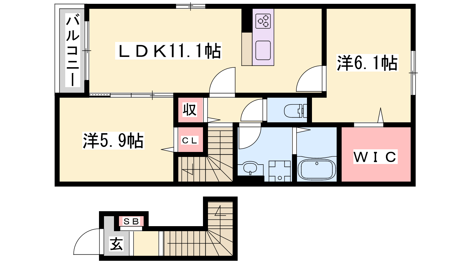 - LDK11.1帖、洋室6.1帖、洋室5.9帖