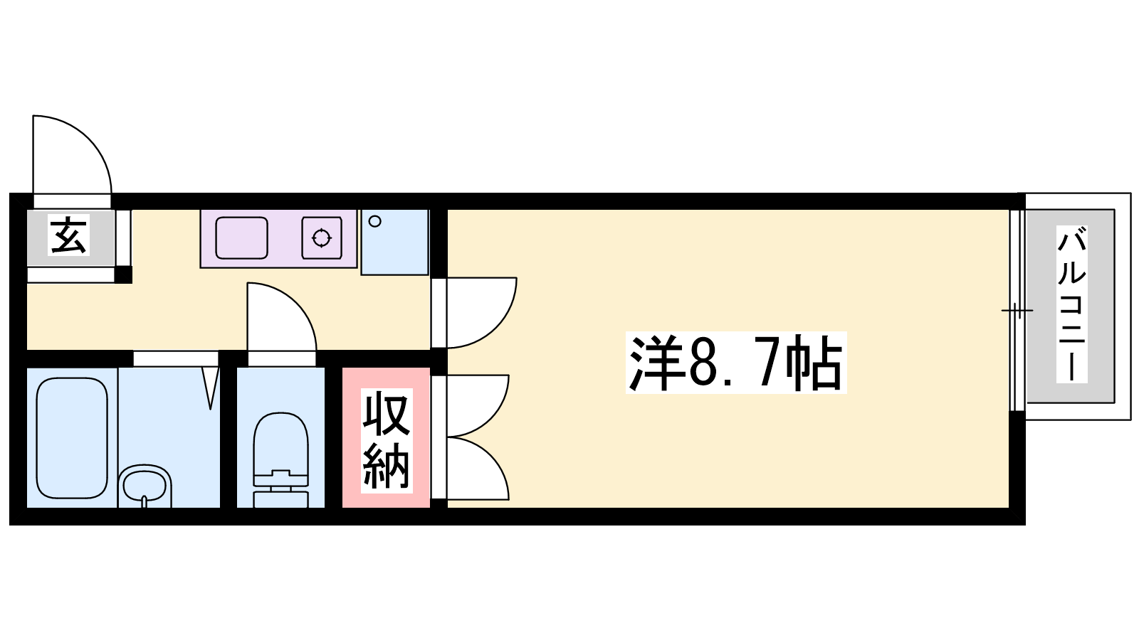 - K2帖、洋室8.7帖
