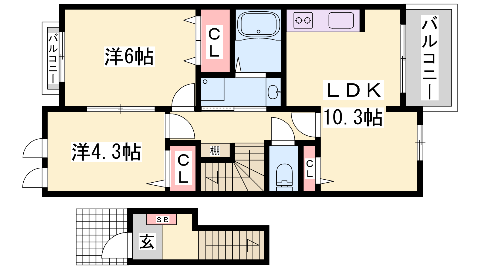 - LDK10.3帖、洋室6帖、洋室4.3帖