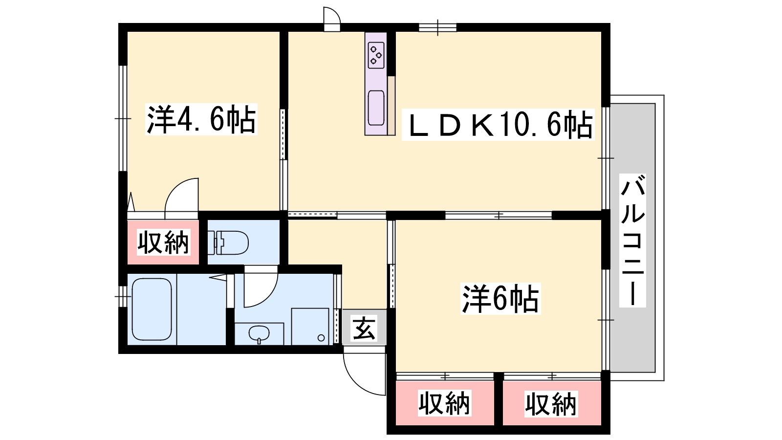 - LDK10.6帖、洋室6帖、洋室4.6帖