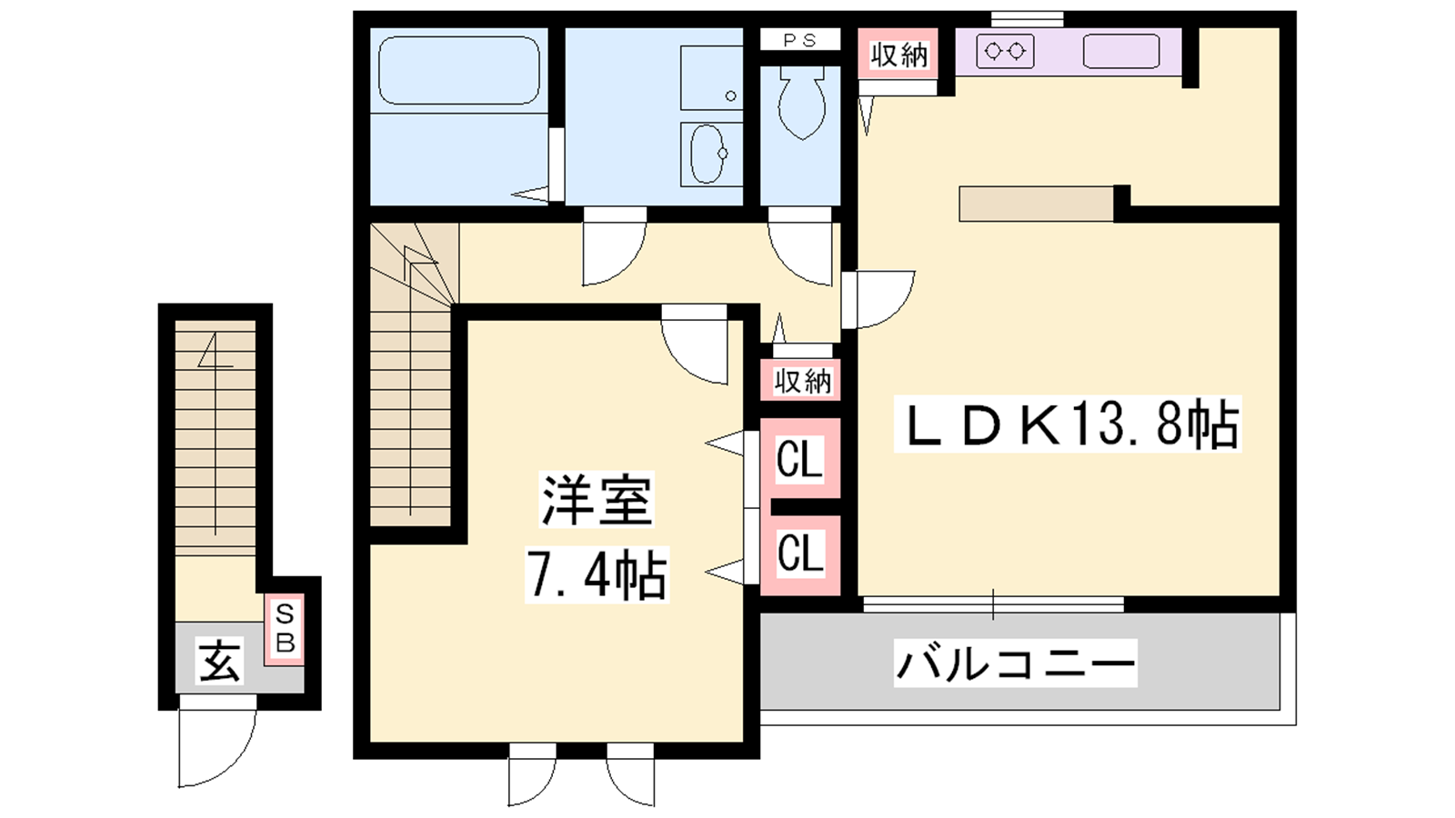 - LDK13.8帖、洋室7.4帖