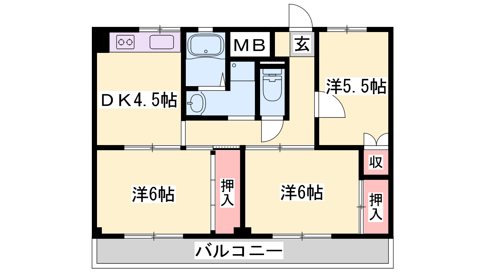 - DK4.5帖、洋室6帖、洋室6帖、洋室5.5帖