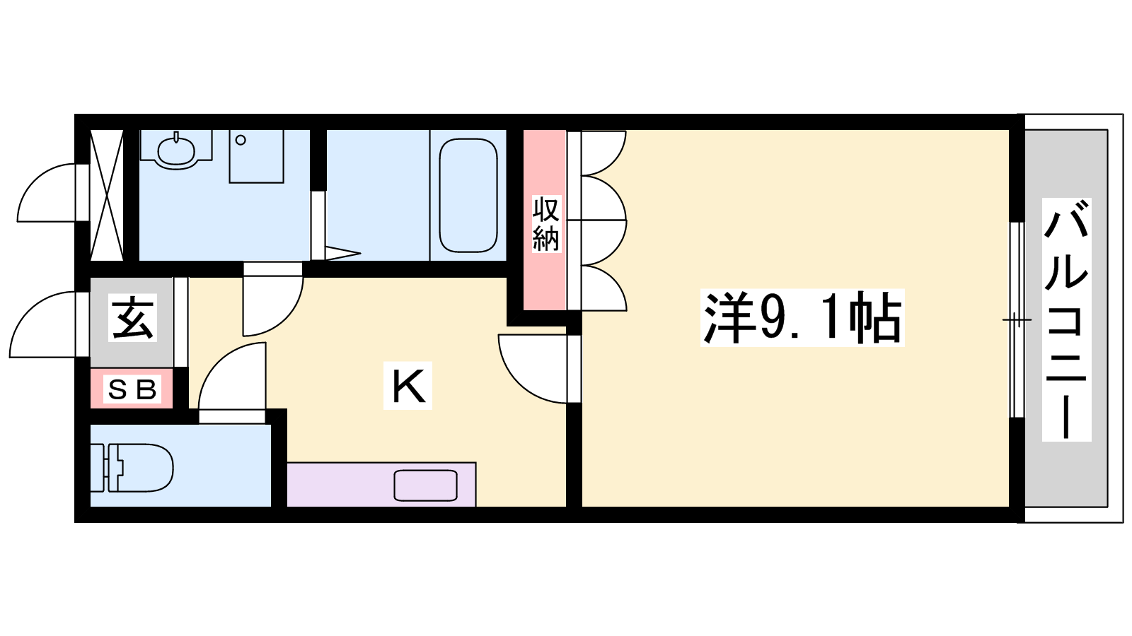 - K2帖、洋室9.1帖