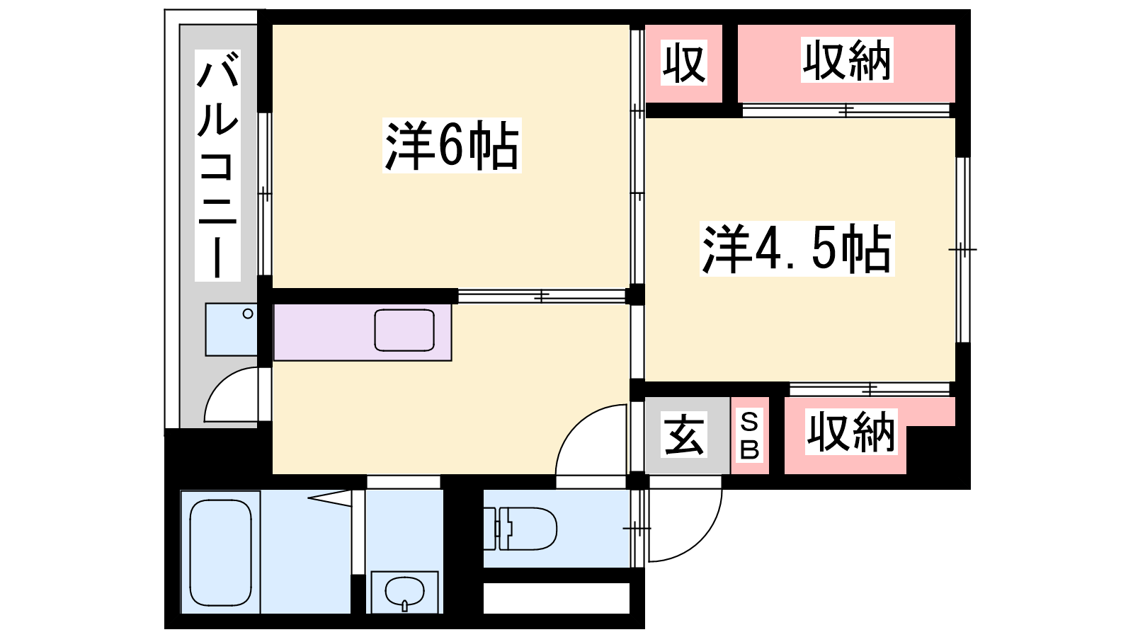 - K4帖、洋室6帖、洋室4.5帖