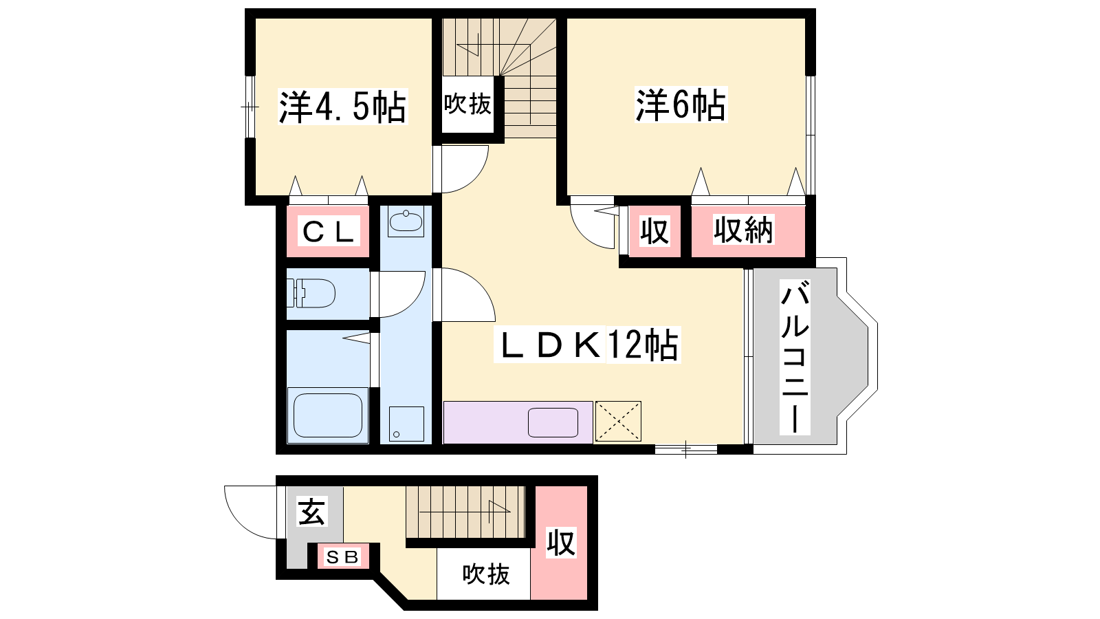 - LDK12帖、洋室6帖、洋室4.5帖