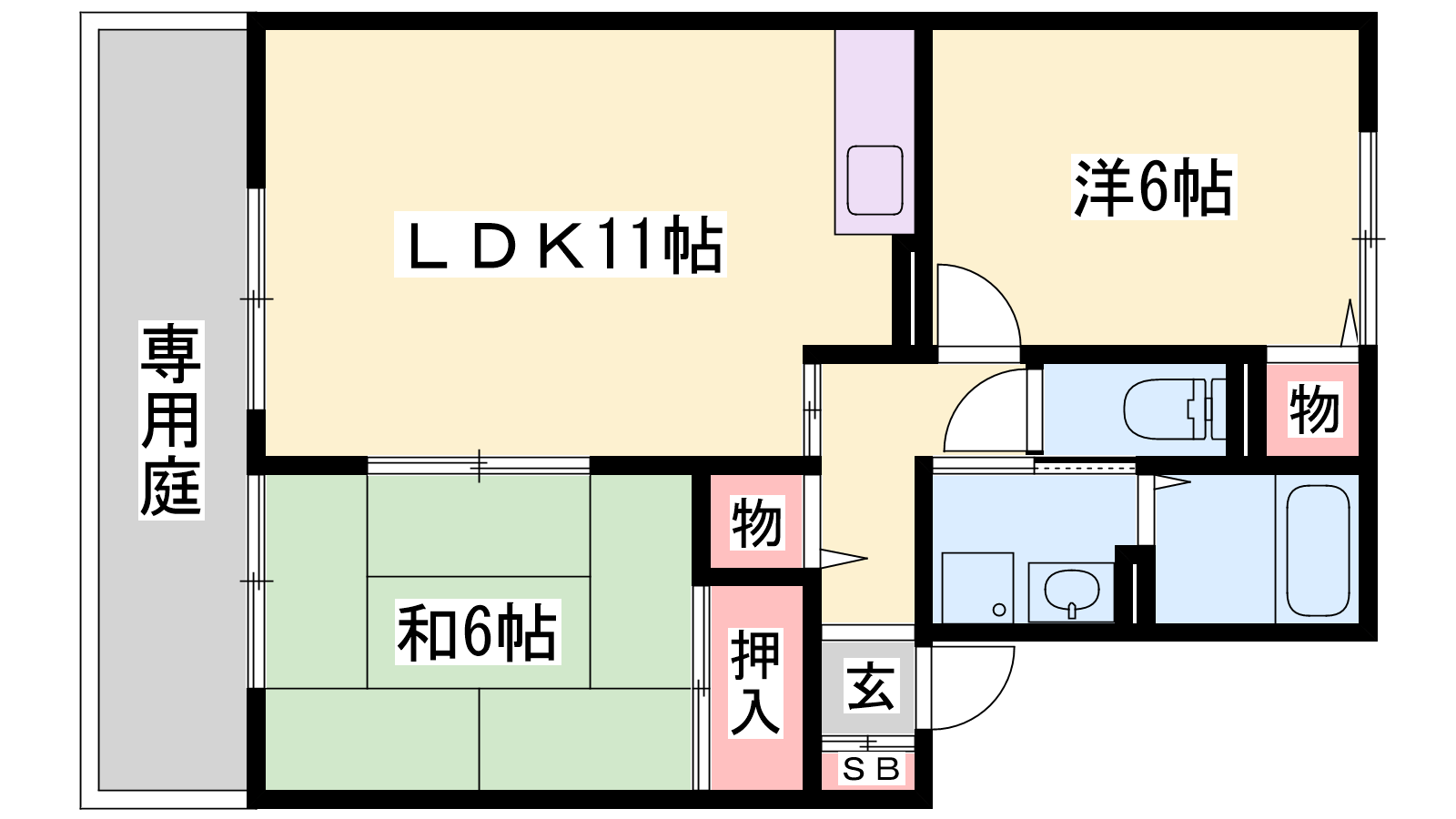 - LDK11帖、洋室6帖、和室6帖