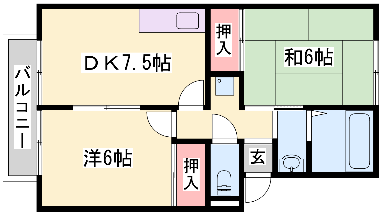 - DK7.5帖、洋室6帖、和室6帖