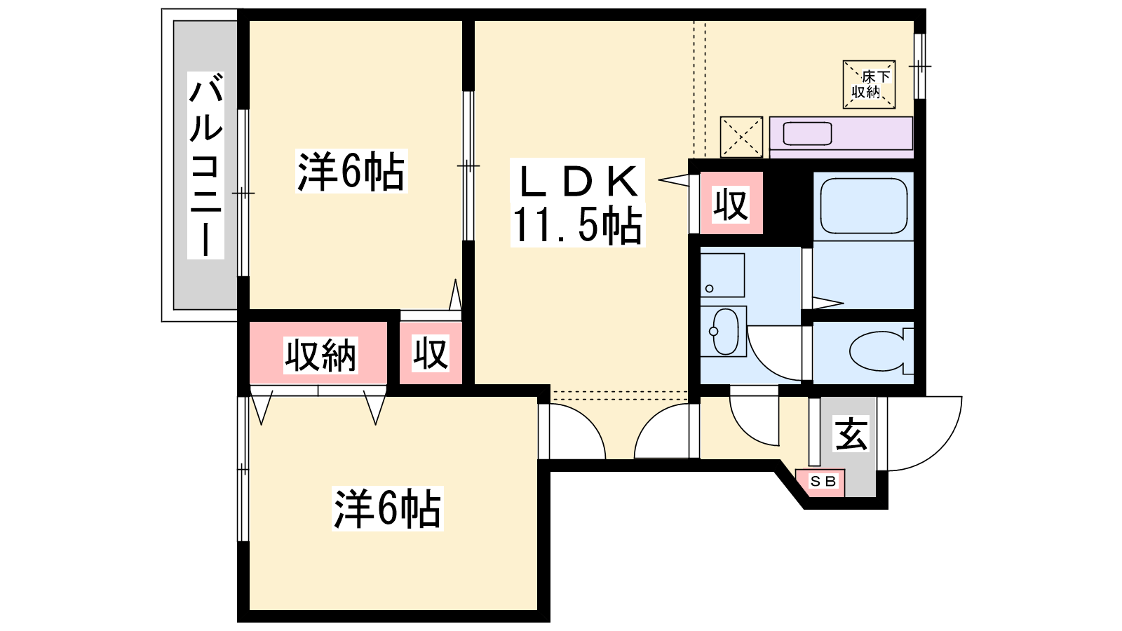- LDK11.5帖、洋室6帖、洋室6帖
