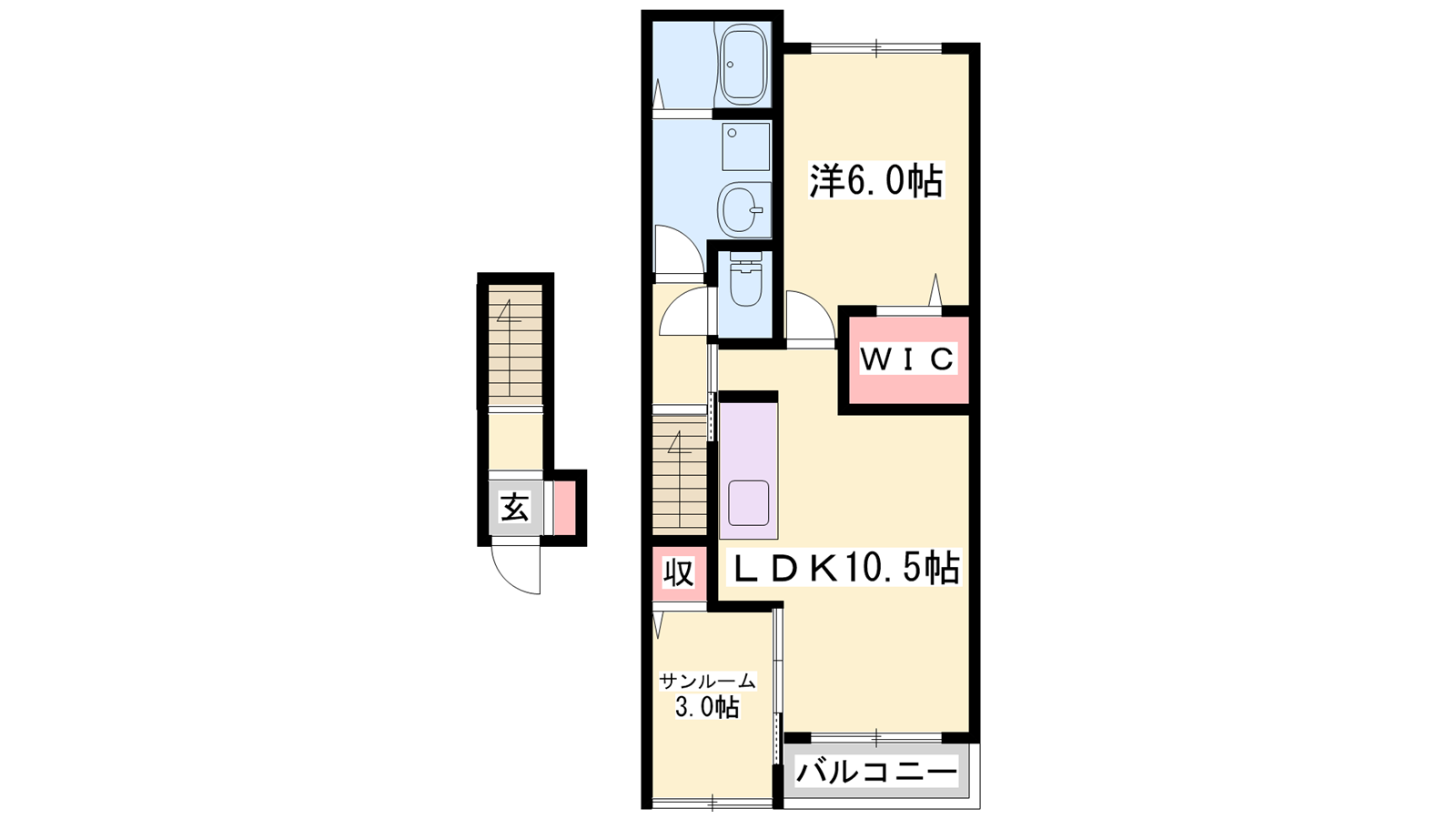 - LDK10.5帖、洋室6帖