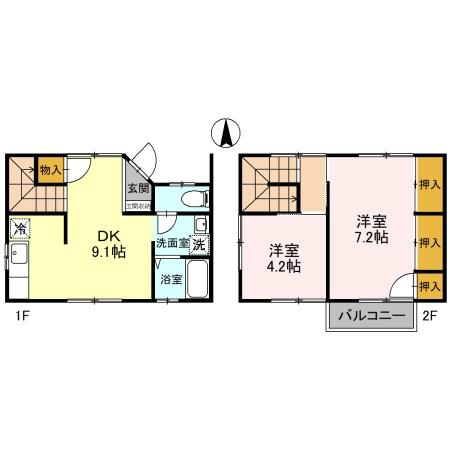 - DK9.1帖、洋室7.2帖、洋室4.2帖