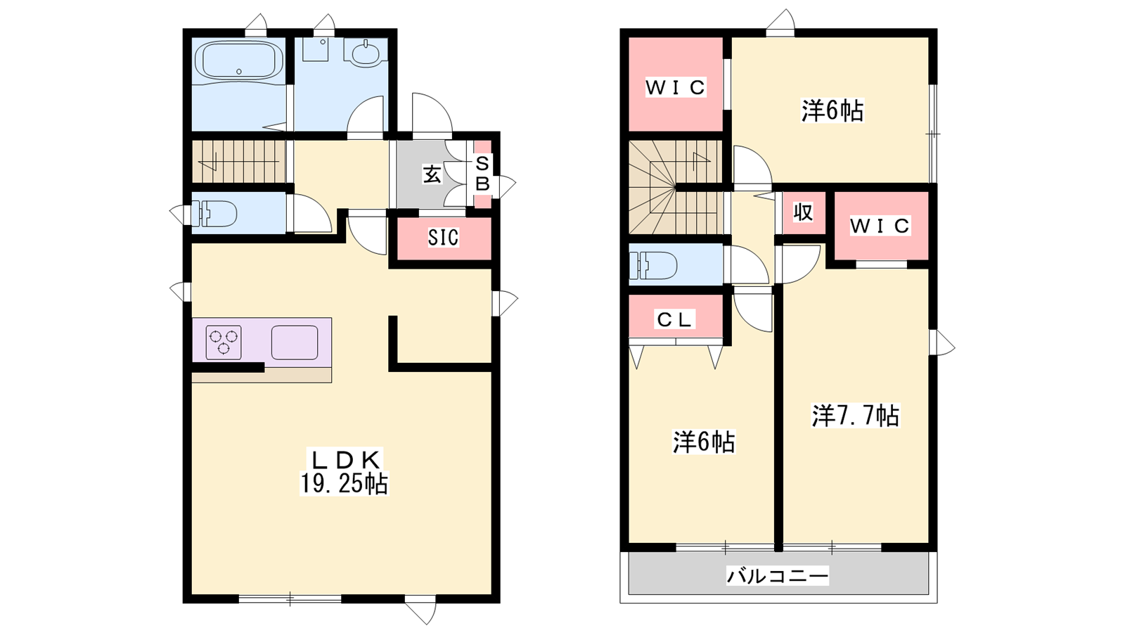 - LDK19.25帖、洋室7.7帖、洋室6帖、洋室6帖