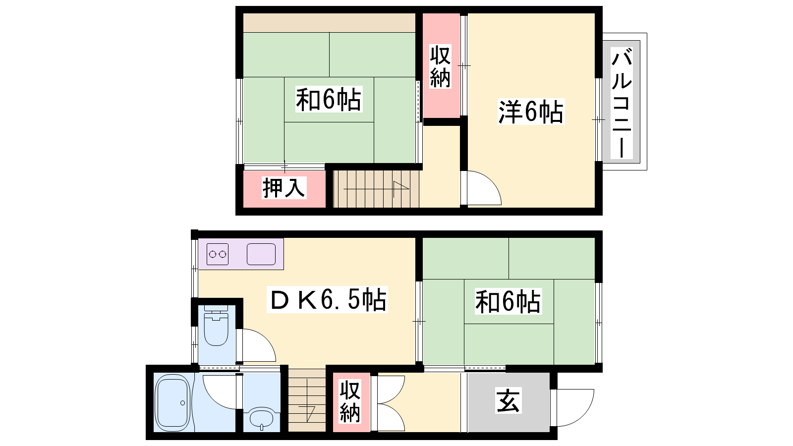 - DK6.5帖、洋室6帖、和室6帖、和室6帖