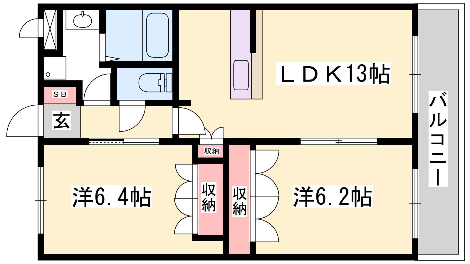 - LDK13帖、洋室6.4帖、洋室6.2帖
