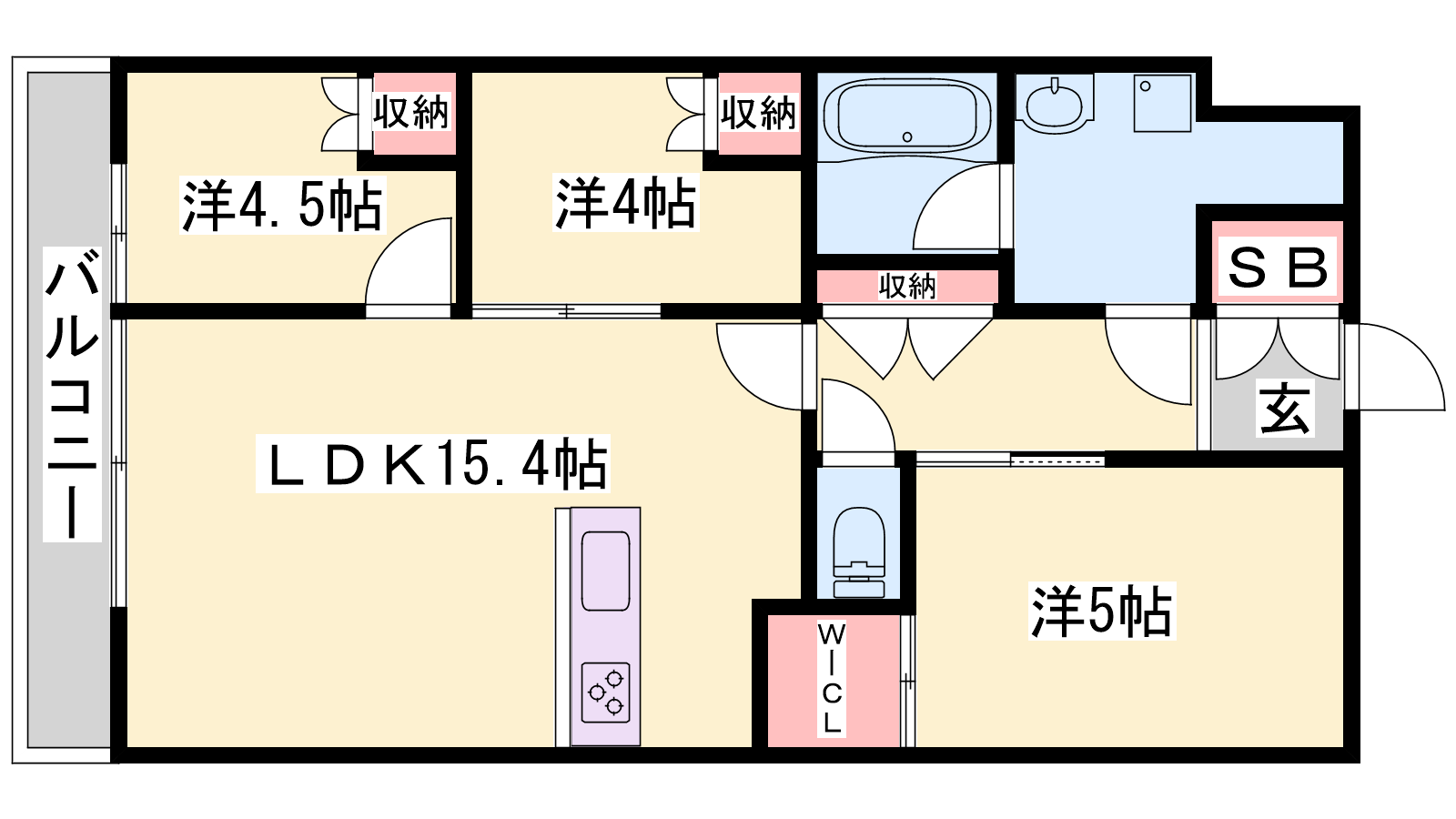 - 洋室5帖、洋室4.5帖、洋室4帖