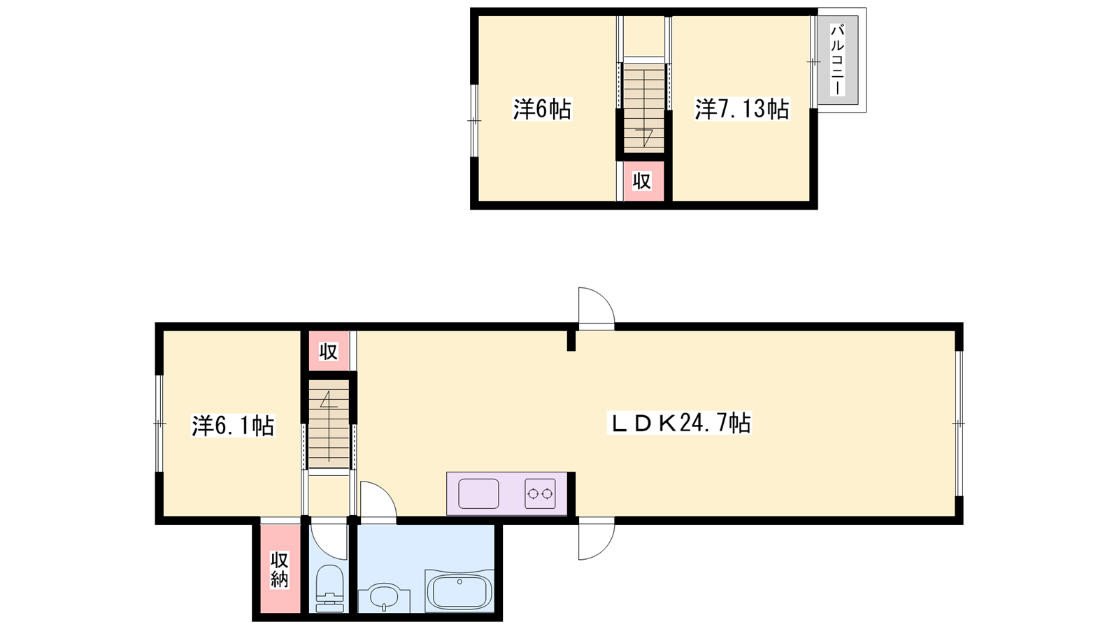 - LDK24.7帖、洋室6.1帖、洋室6帖、洋室7.13帖