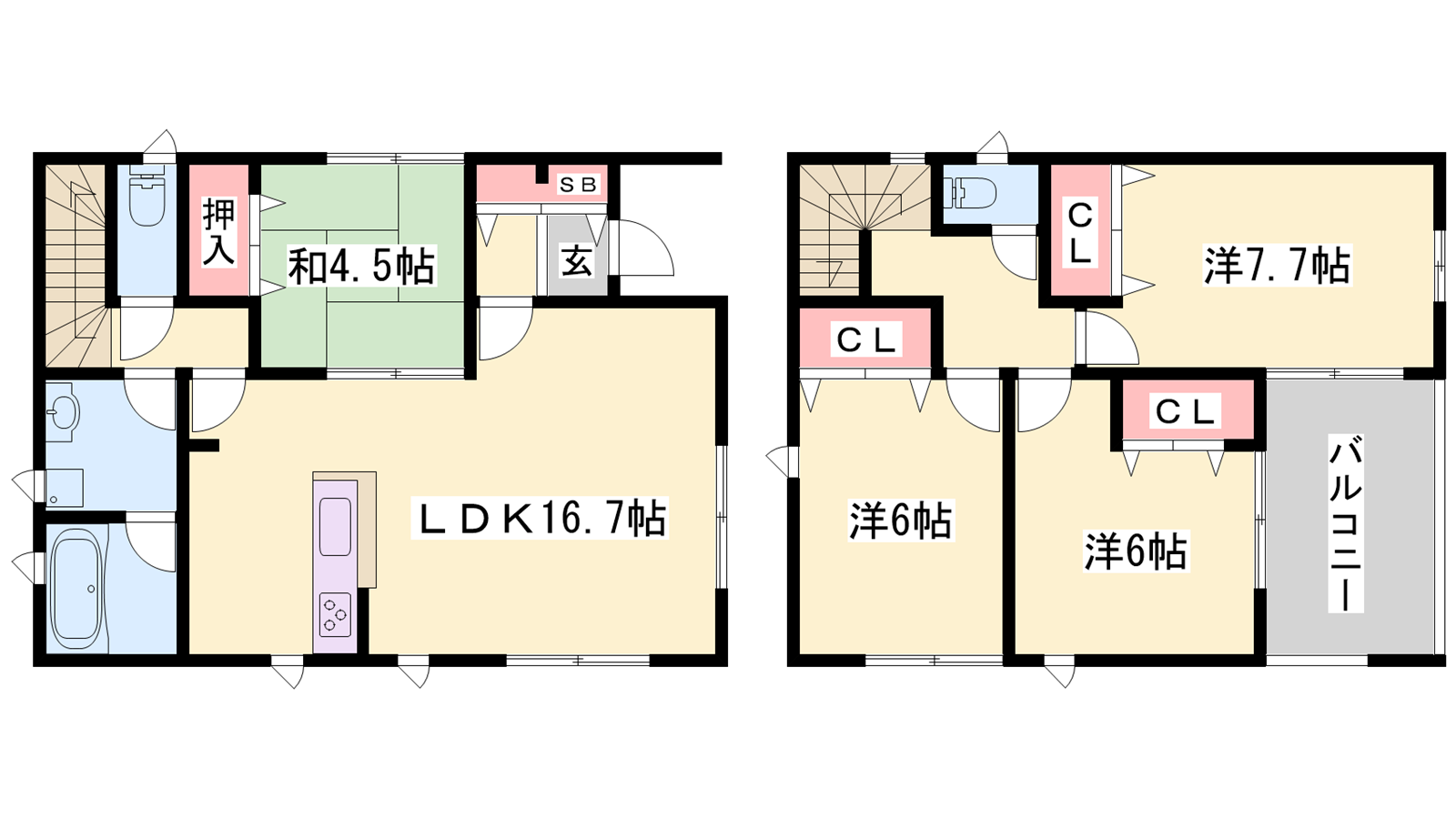 - LDK16.7帖、洋室7.7帖、洋室6帖、洋室6帖