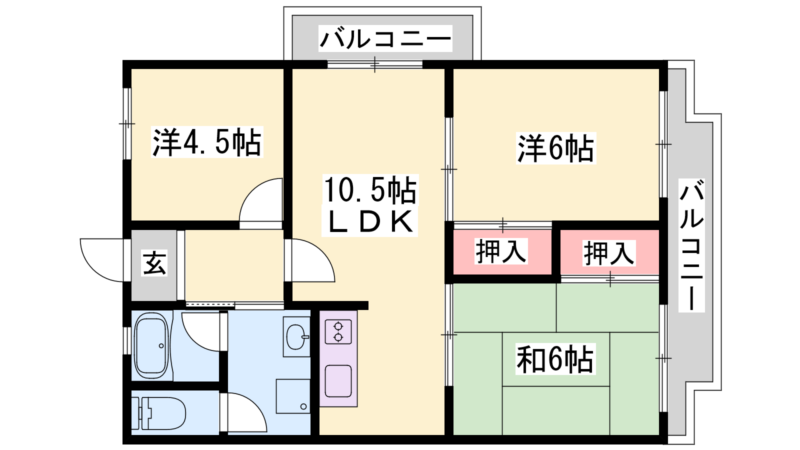 - LDK10.5帖、洋室4.5帖、洋室6帖、和室6帖