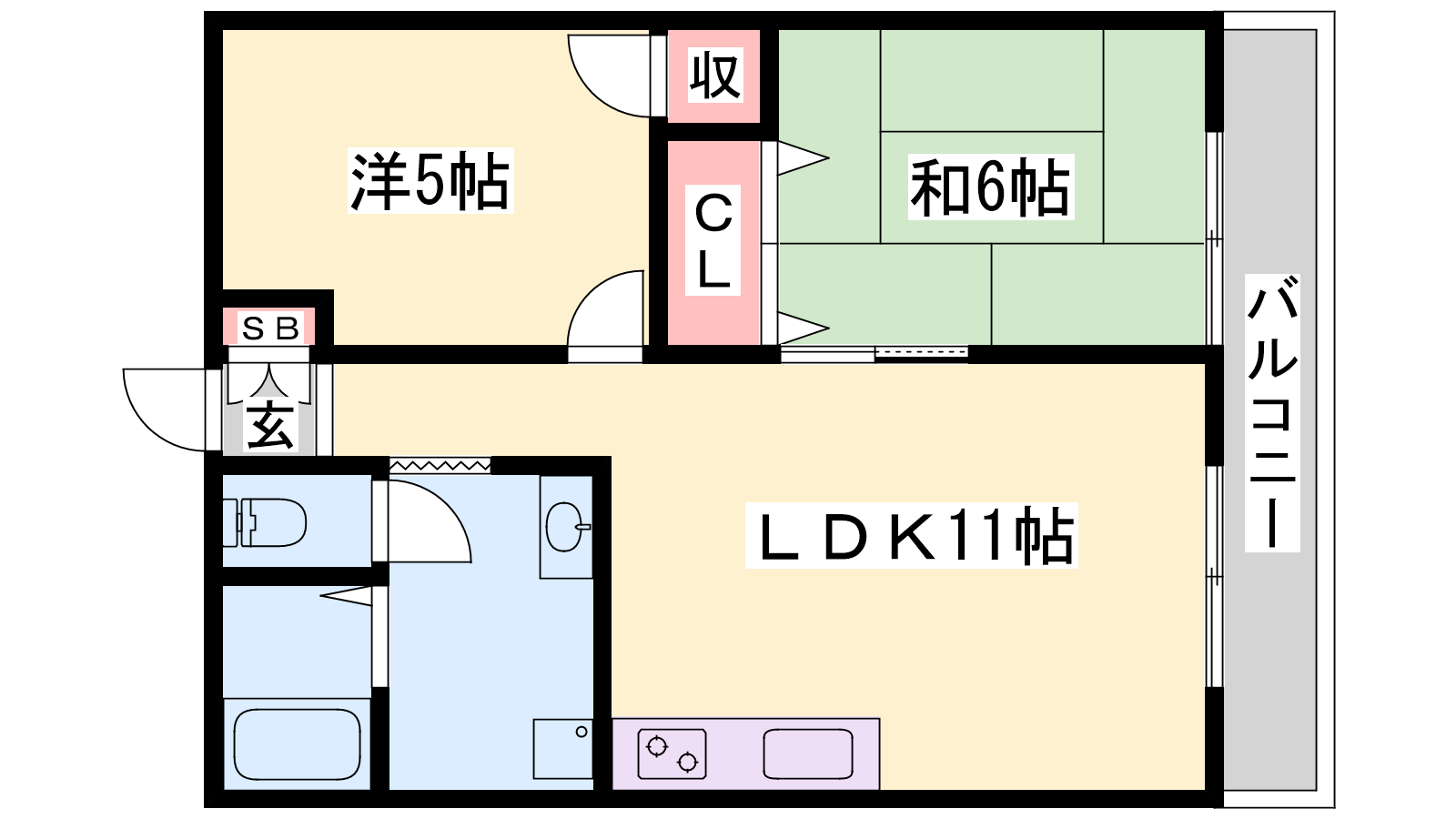 - LDK11帖、和室6帖、洋室5帖
