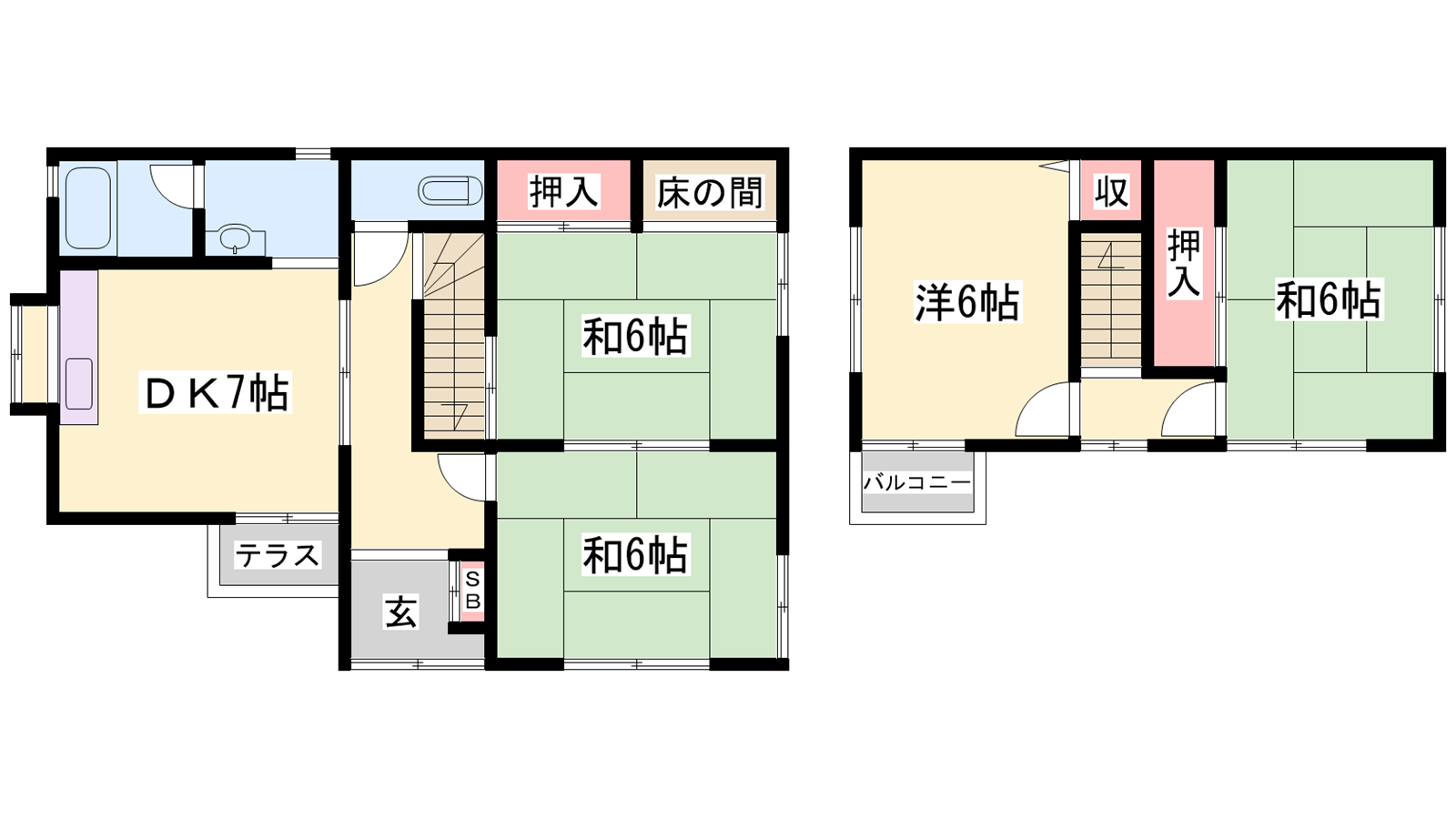 - DK7帖、洋室6帖、和室6帖、和室6帖、和室6帖