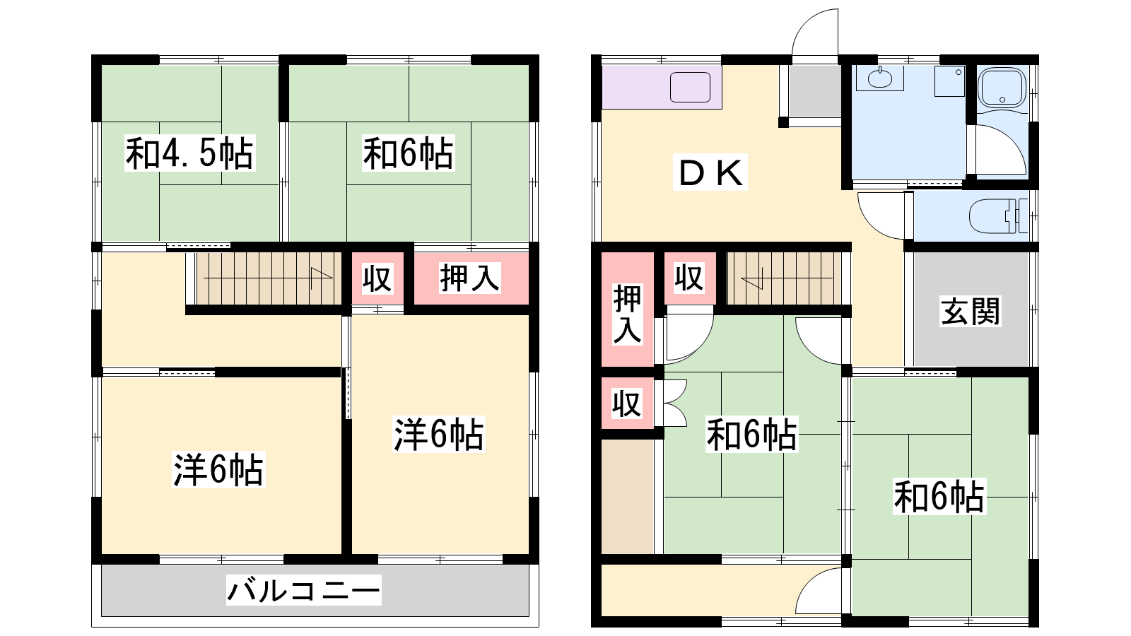 - DK5帖、洋室6帖、洋室6帖、和室6帖、和室6帖、和室6帖、和室4.5帖