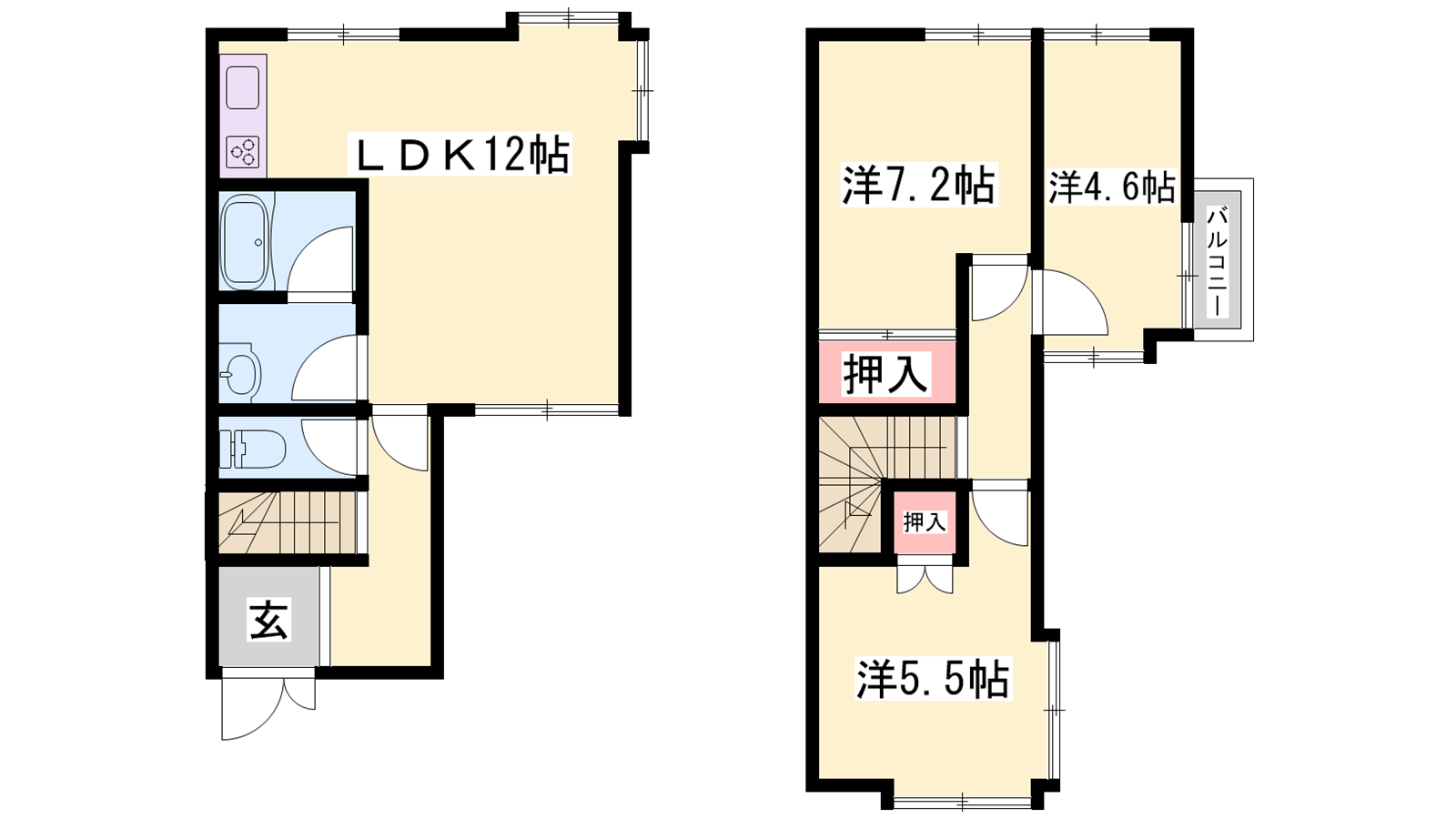 - LDK12帖、洋室4.6帖、洋室5.5帖、洋室7.2帖